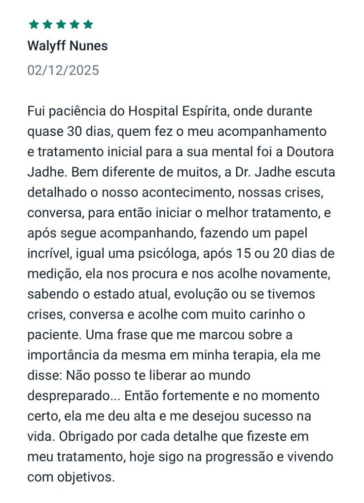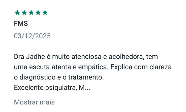 Confira abaixo avaliações de pacientes da Dra. Jadhe Martins
